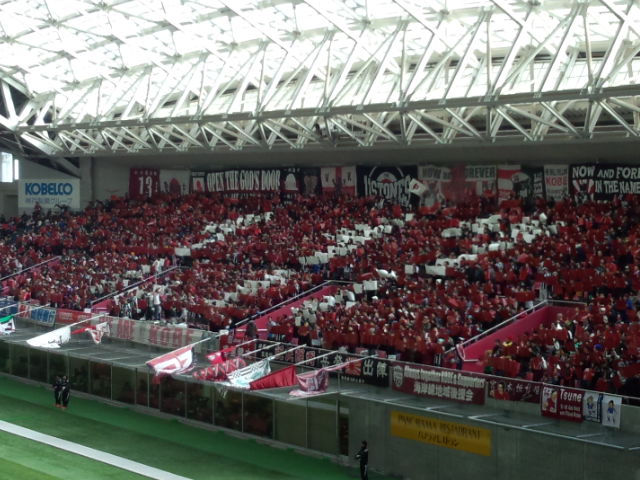一回目はゴール裏に向かってしていたけど、