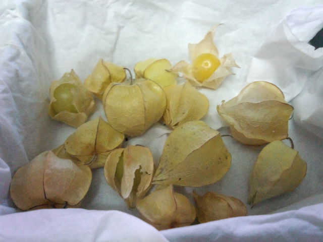 収穫したほおずきの実。