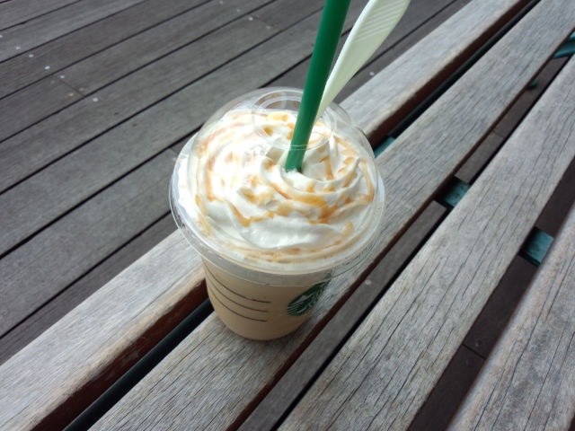 初めてスタバのフラペチーノ食べたけど、結構甘いね、これ。