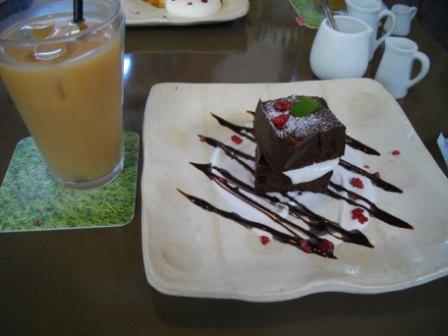 ケーキセットを注文して、私はアイスティー(アールグレイ)とショコラショコラを選択。